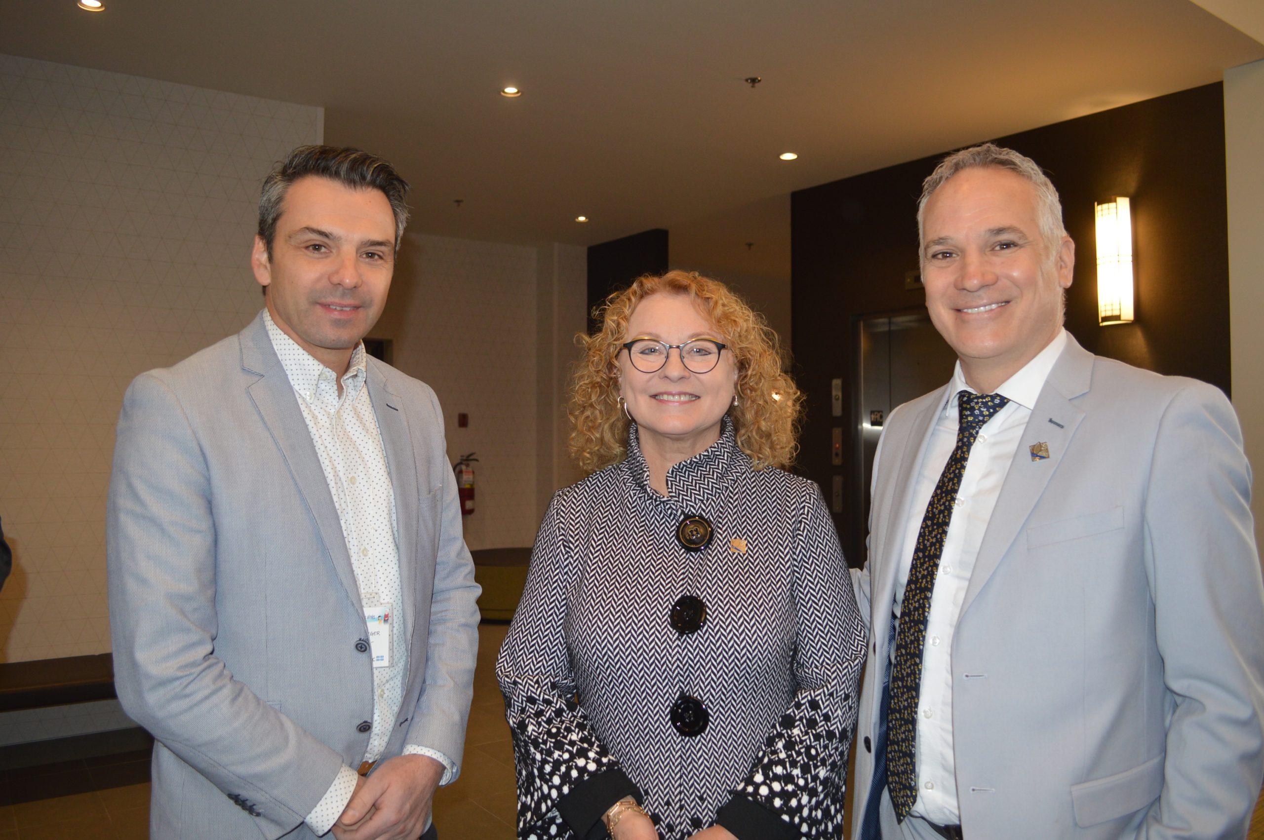 Marguerite Blais, accompagnés notamment du député d’Arthabaska et whip en chef du gouvernement, Eric Lefebvre, et du député de Drummond-Bois-Francs, Sébastien Schneeberger, a profité du début de la rencontre pour y aller de certaines annonces.