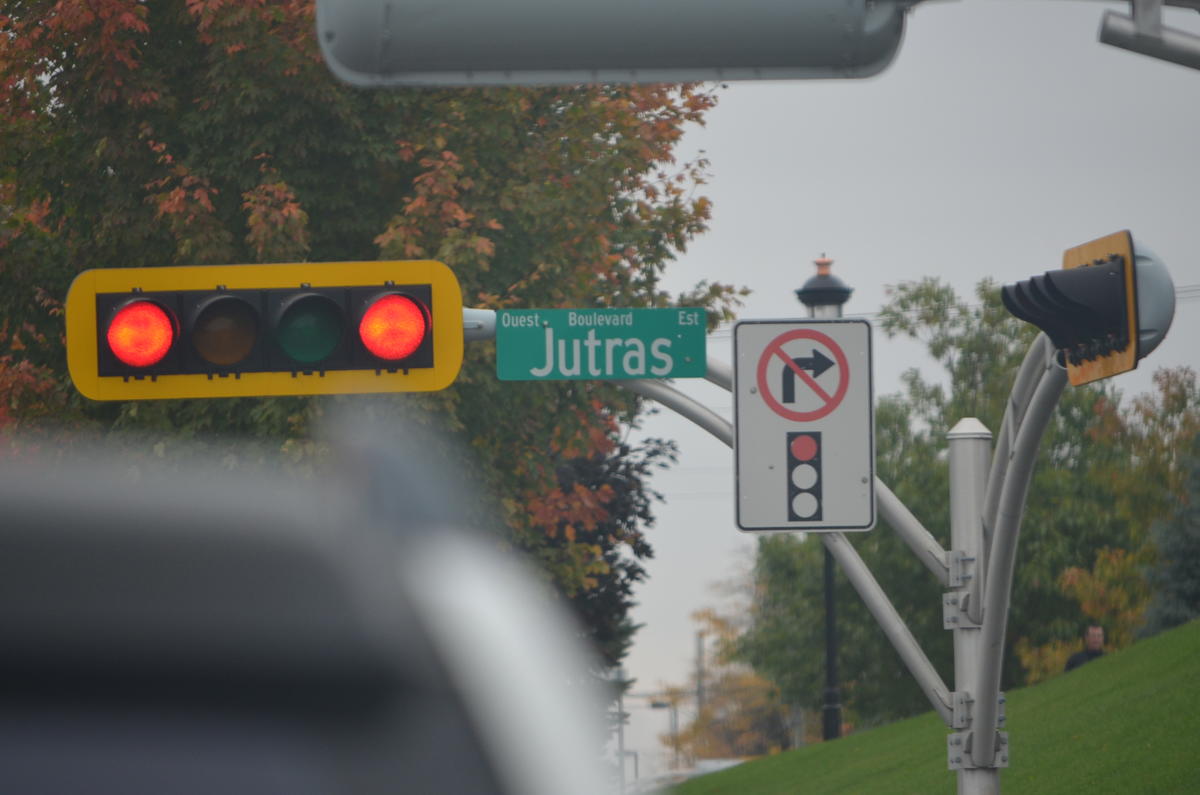 Quant au ministère des Transports, il interdit le virage à droite sur feu rouge à quatre de ses 58 approches. Les quatre interdictions se concentrent sur trois de ses 16 intersections, celles que forme le boulevard Pierre-Roux avec la Grande-Ligne, Bois-Francs et Labbé, dans le voisinage du réservoir Beaudet.