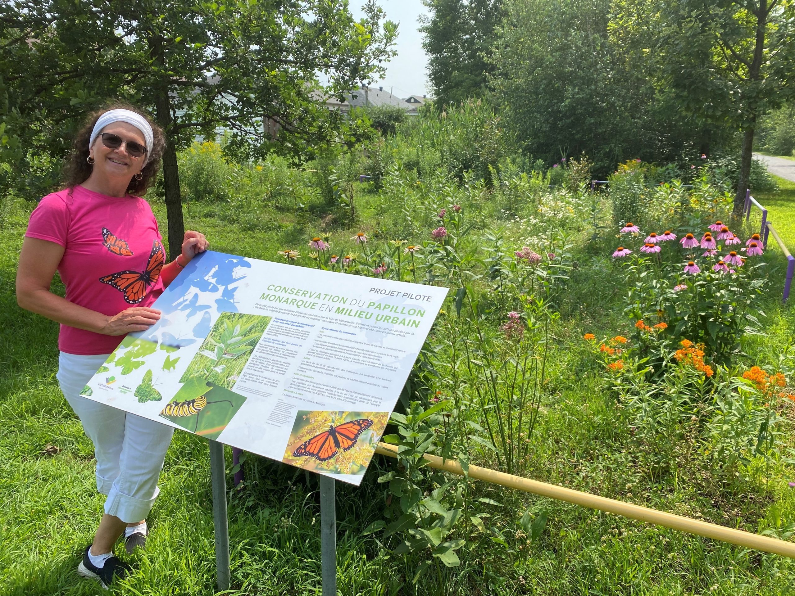 Rencontrée dans la zone de conservation du papillon monarque en milieu urbain (environ 330 mètres carrés), située au parc Ginette-Genois qu’elle entretient avec cœur depuis son installation en 2020, Yolaine Rousseau explique les différentes démarches qu’elle a entreprises afin de protéger ce papillon et, par le fait même, la biodiversité.