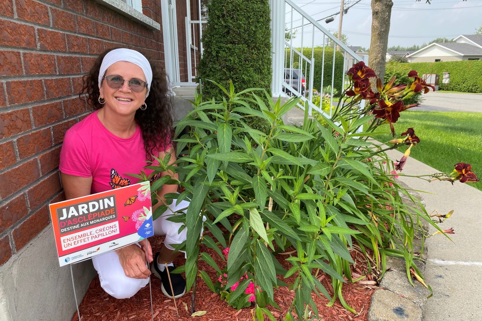 La scientifique de formation et enseignante retraitée parle également avec ardeur de sa rue, Lucille-Lesieur, qui arbore désormais à ses deux extrémités une belle grande affiche “Rue amie des monarques”. Elle ajoute à cela ses résidents, dont plusieurs ont ajouté un plant d’asclépiades à leur aménagement paysager et installé l’affichette prouvant qu’ils font véritablement un petit, mais ô combien important geste pour aider l’espèce qu’on retrouve dans la région et à Victoriaville.