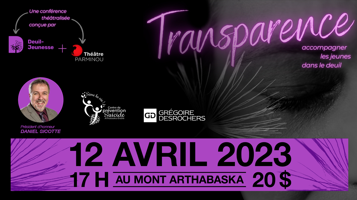 Le 12 avril au pavillon du Mont Arthabaska, le Centre funéraire Grégoire & Desrochers et le Centre de prévention suicide Arthabaska-Érable invitent les gens à une soirée consacrée au bien-être des jeunes qui font face à la perte et au deuil. Sous la présidence d’honneur de Daniel Sicotte, cet événement sera l’occasion d’apprendre davantage sur l’accompagnement des jeunes dans ce contexte difficile.