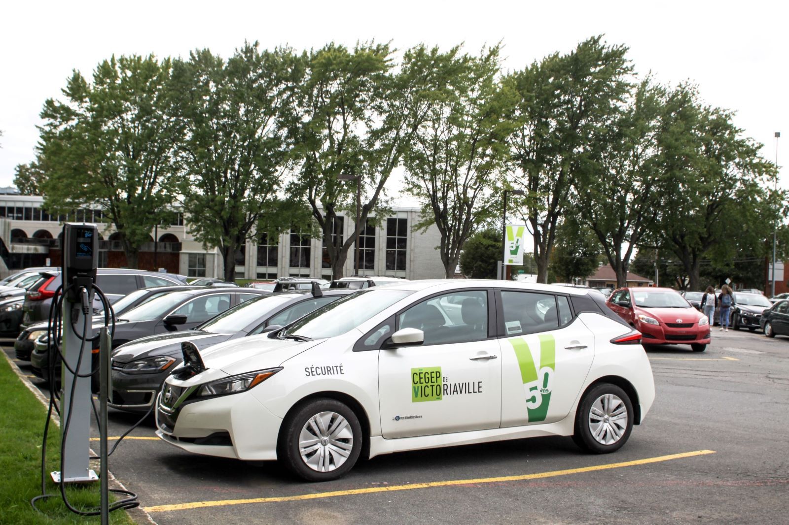 Dans un souci de mettre de l’avant des actions de plus en plus vertes, le Cégep de Victoriaville a récemment fait l’installation de cinq nouvelles bornes de recharges électriques, portant leur nombre à six. Ainsi le pavillon central, l’École nationale du meuble et de l’ébénisterie (campus de Victoriaville et de Montréal) et l’Institut national d’agriculture biologique peuvent désormais accueillir douze véhicules électriques qui peuvent faire le plein énergétique simultanément.