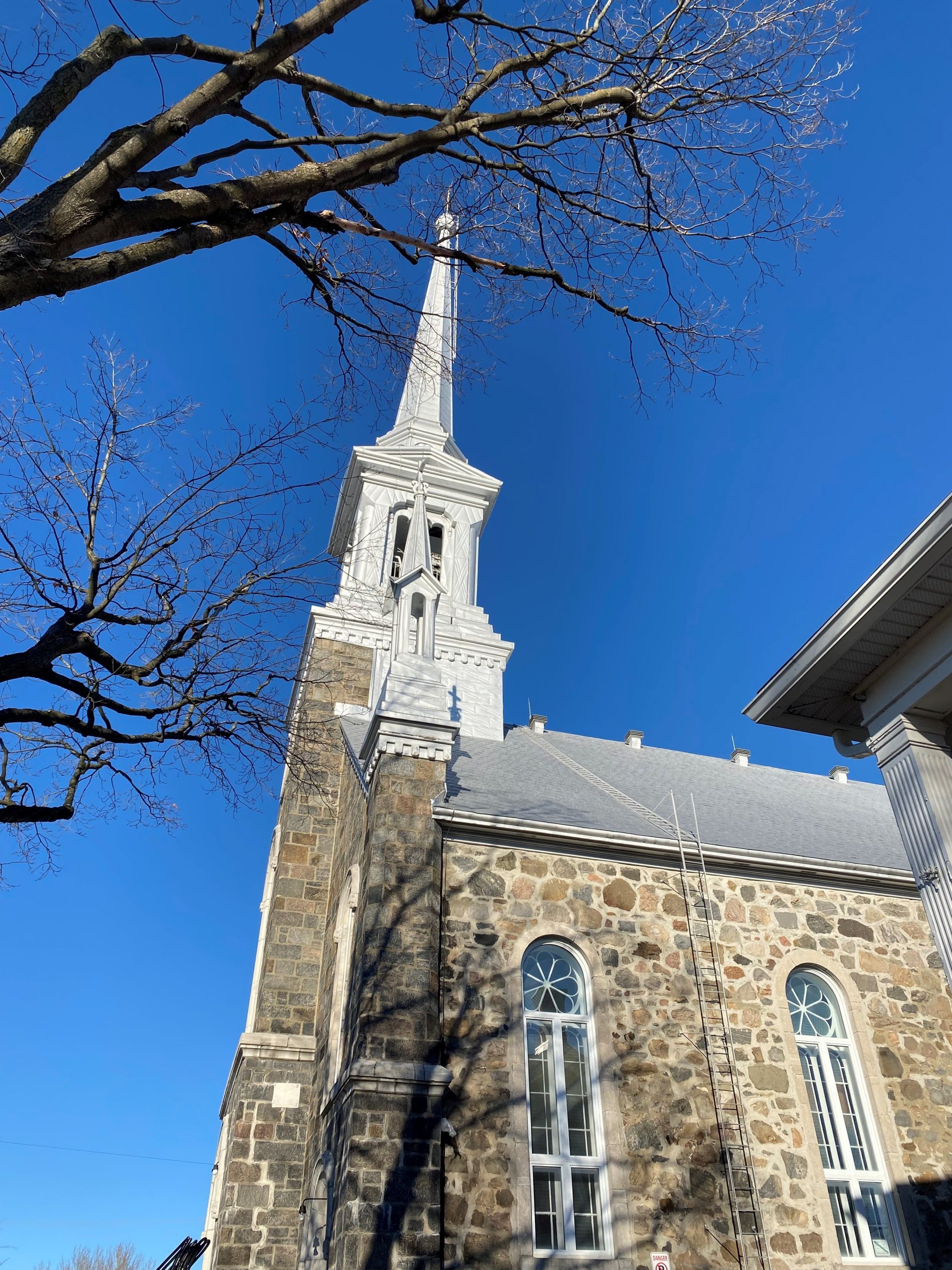 Pour ce qui est de la messe dominicale, elle aura lieu dans le local de la FADOQ, tout près. Ceux qui passent devant l’église remarqueront que des travaux sont en cours. Ceux-ci n’ont rien à voir avec le clocher. Il s’agit de travaux de maçonnerie prévus et amorcés depuis plusieurs mois.