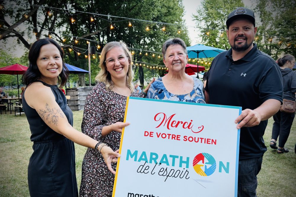 L’équipe du Marathon de l’espoir a récemment annoncé ses nouveaux présidents d’honneur au Biergarten de l’Île. Il s’agit de Marie-Michèle et Jonathan Fortier, propriétaires de la Jardinerie Fortier.