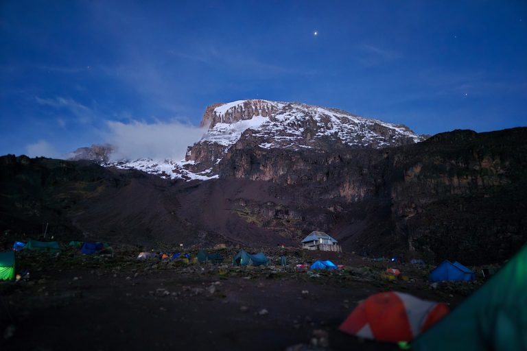 Arrive 23 h, moment de la préparation et d’une petite collation. Puis, à minuit, débute l’ascension vers le sommet du Kilimandjaro. “On marche afin d’arriver au sommet à temps pour le lever du soleil. On marche en pleine noirceur avec une lampe frontale. On ne voit rien du tout. Tu ne vois même pas le sommet, tu marches dans l’inconnu. Rien d’autre à faire que de regarder tes pieds pour ne pas trébucher. Et à une telle altitude, c’est plus difficile au niveau de la respiration”, observe Matthieu.