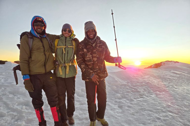 Après six heures de marche, le groupe se pointe au sommet, à 5895 m, un peu avant la levée du jour, moment auquel les participants ont assisté. “Nous étions les premiers arrivés au sommet. Il faut savoir que c’est populaire, il y a plusieurs groupes”, mentionne Matthieu Hébert.