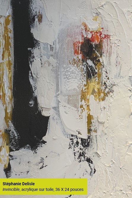 Ce mois-ci, la Fondation propose l’œuvre “Invincible” de Stéphanie Delisle. C’est après un dur combat de près de deux mois contre la bactérie mangeuse de chair que l’artiste a créé cette pièce touchante. Ne s’étant jamais effondrée, ayant combattu au front durant plusieurs semaines, cette dernière se sentait alors… invincible!