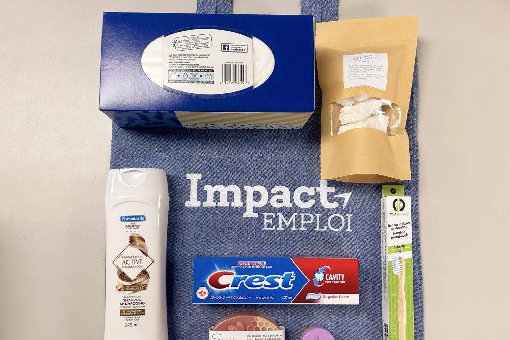 Impact Emploi a choisi une formule maison pour une partie de ses produits. “Nous avons décidé cette année de faire nous-mêmes les savons pour le corps, les baumes à lèvres et le détergent à lessive. Notre décision a été basée sur le coût des produits et un souci écologique. Même si nous avons la chance d’avoir des partenaires qui nous aident financièrement, il fallait réduire les coûts où il était possible de le faire afin de pouvoir mettre autant, sinon plus, de produits que les dernières années. De plus, en fabriquant ces produits, nous évitons le suremballage, puisque nous avons choisi d’acheter nos matières premières en vrac. Nous avons aussi éliminé les bas de Noël à usage unique pour les remplacer par des sacs réutilisables. Ce sont de petits gestes, mais quand on parle de 350 exemplaires de sept produits, il y a une bonne différence!”, explique Maïka Ouellet, coordonnatrice du projet et agente aux communications chez Impact Emploi.