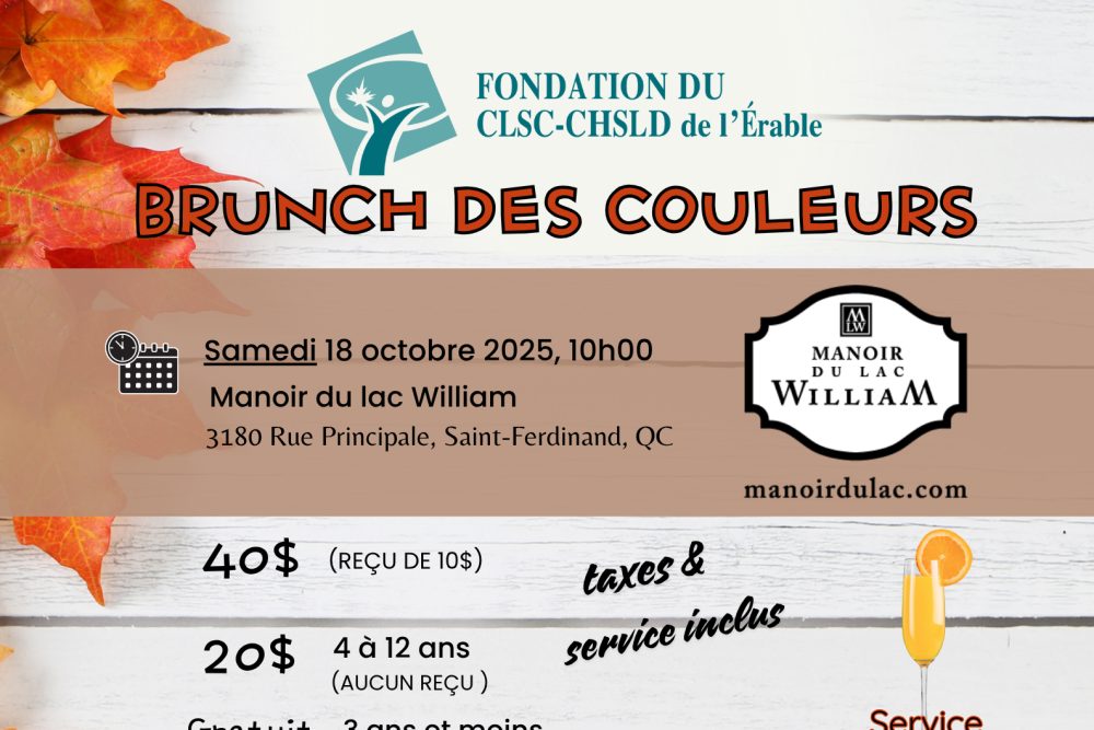 La Fondation du CLSC-CHSLD de L’Érable donnera le coup d’envoi de sa 36e campagne de financement le 18 octobre prochain, à l’occasion du brunch des couleurs.