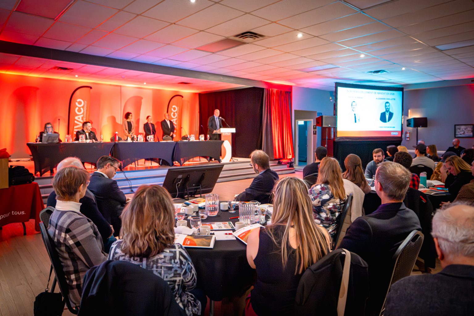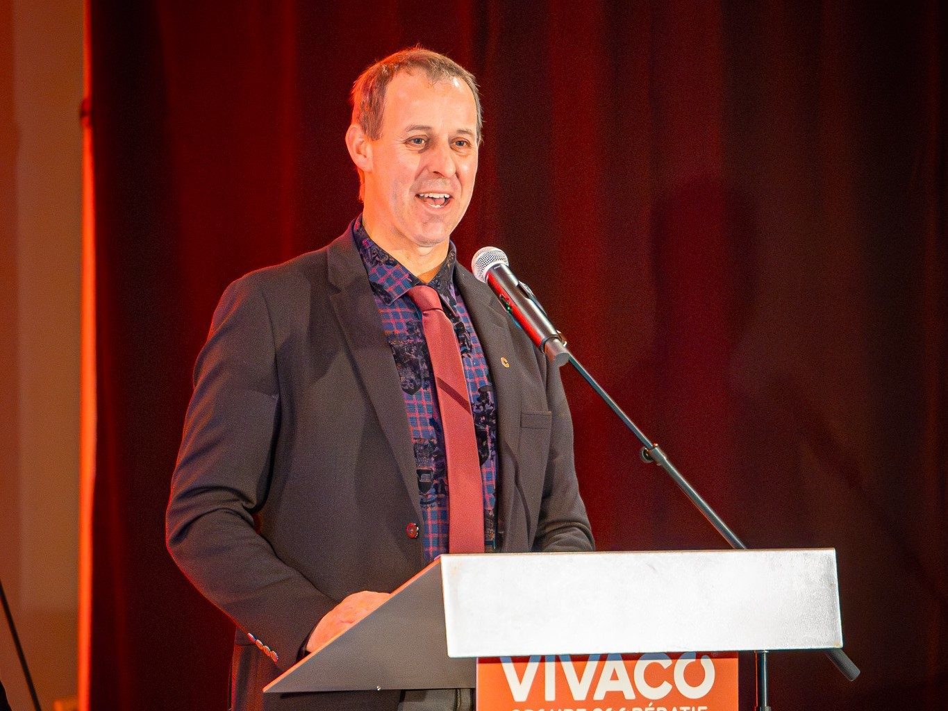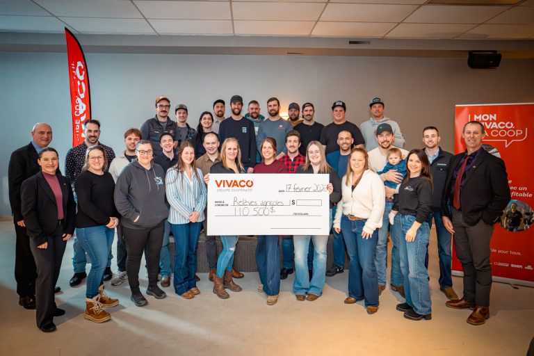 COMMUNIQUÉ – C’est lors de son assemblée générale annuelle, tenue à Warwick, que VIVACO groupe coopératif a présenté à plus de 160 convives les résultats de l’exercice terminé le 31 octobre 2025. Les dirigeants en ont profité pour souligner le 10e anniversaire de la création de VIVACO groupe coopératif en plus de rendre un hommage au président sortant André Normand. Marc-André Roy lui succède, ayant été élu président par le conseil d’administration dès la fin de l’assemblée.
