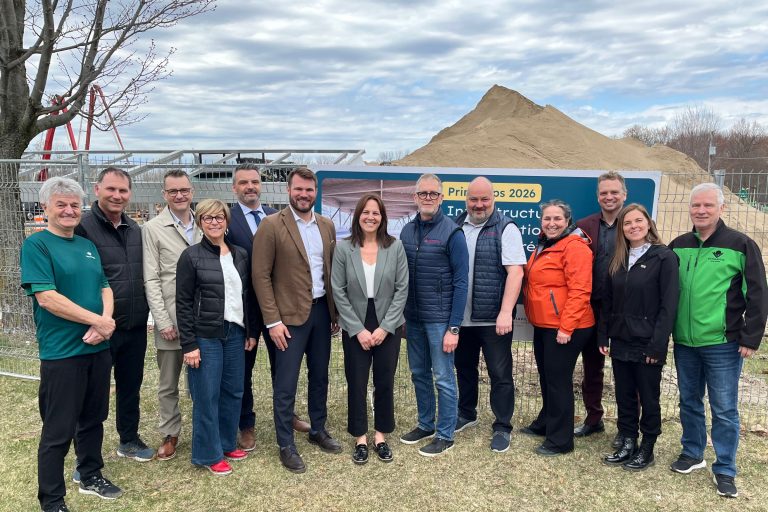L’important chantier de construction de l’infrastructure multifonctionnelle, comprenant une patinoire réfrigérée, a officiellement été inauguré au parc Terre-des-Jeunes de Victoriaville.