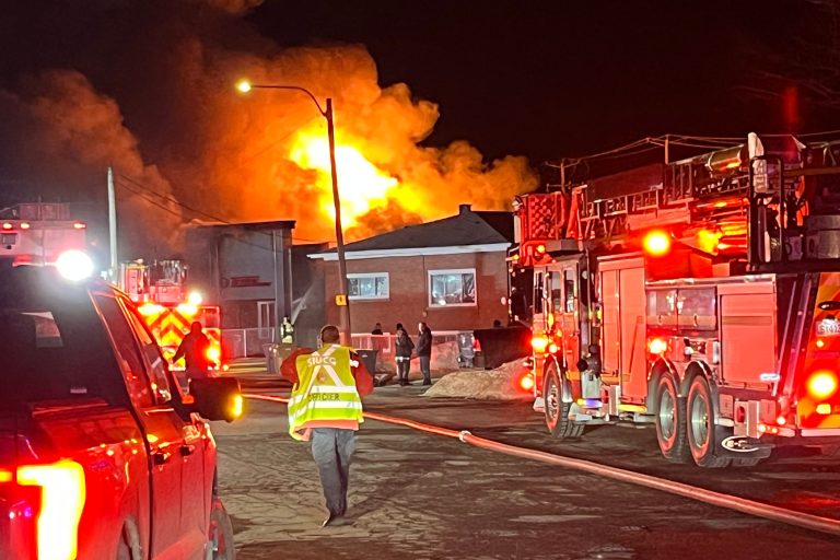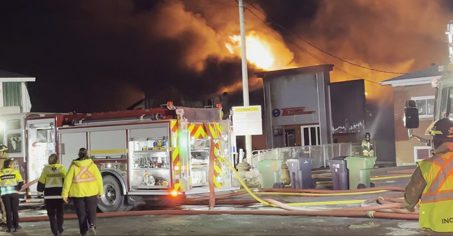 Bâtiment commercial détruit par les flammes à Victoriaville