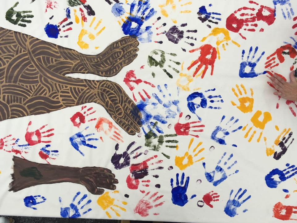 Chaque personne participante a laissé une empreinte de sa main sur une grande toile sur laquelle Caroline Moreau, artiviste de la région, avait déjà peint quatre troncs en forme de bras dont les empreintes devenaient les feuilles multicolores d’un arbre en devenir. Adultes et enfants ont ainsi multiplié les traces de leur passage. L’AGÉPA souhaitait ainsi sensibiliser la population à la richesse de la diversité de la communauté et des liens de solidarité dans une ambiance festive et décontractée.