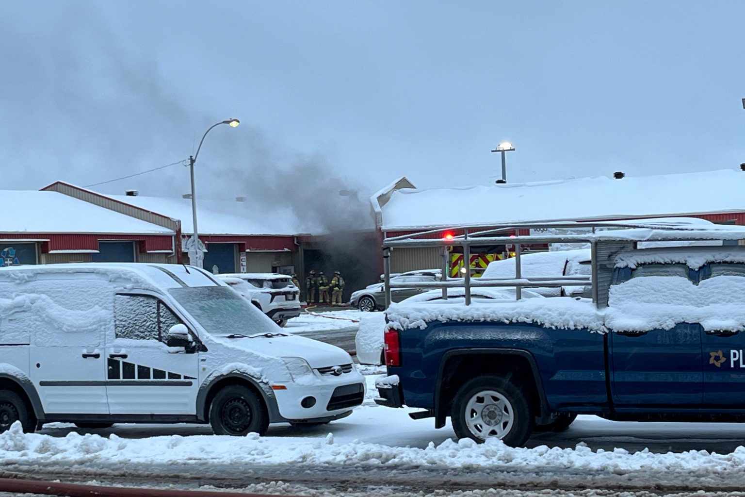 Le Service de sécurité incendie (SSI) a été alerté vers 15 h 50. Un véhicule, possiblement un chariot élévateur, aurait pris feu à l’intérieur.