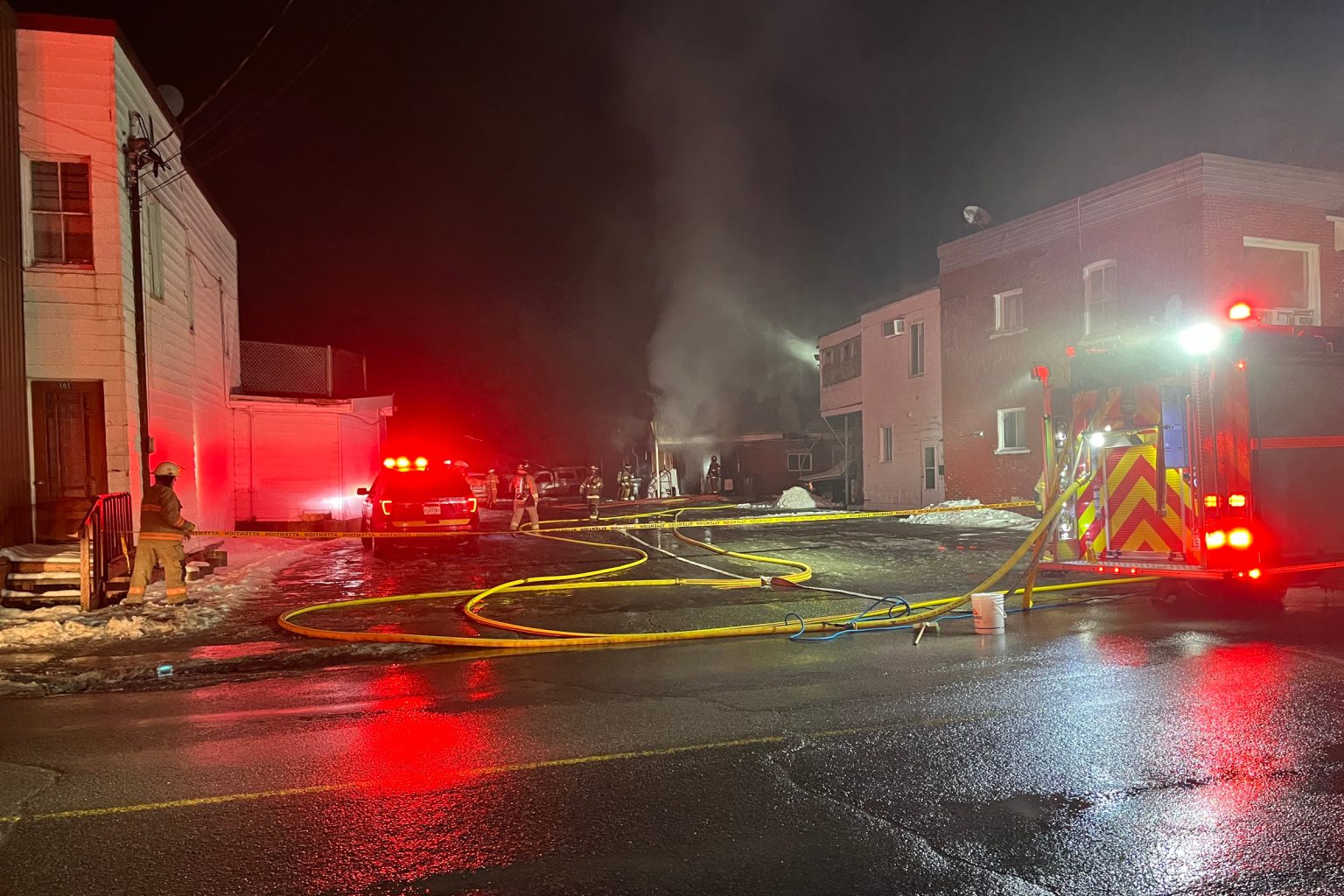Un incendie de bâtiment a éclaté en soirée, mercredi, sur la rue Notre-Dame Ouest, voisin du restaurant Victoria, tout près du centre-ville de Victoriaville.