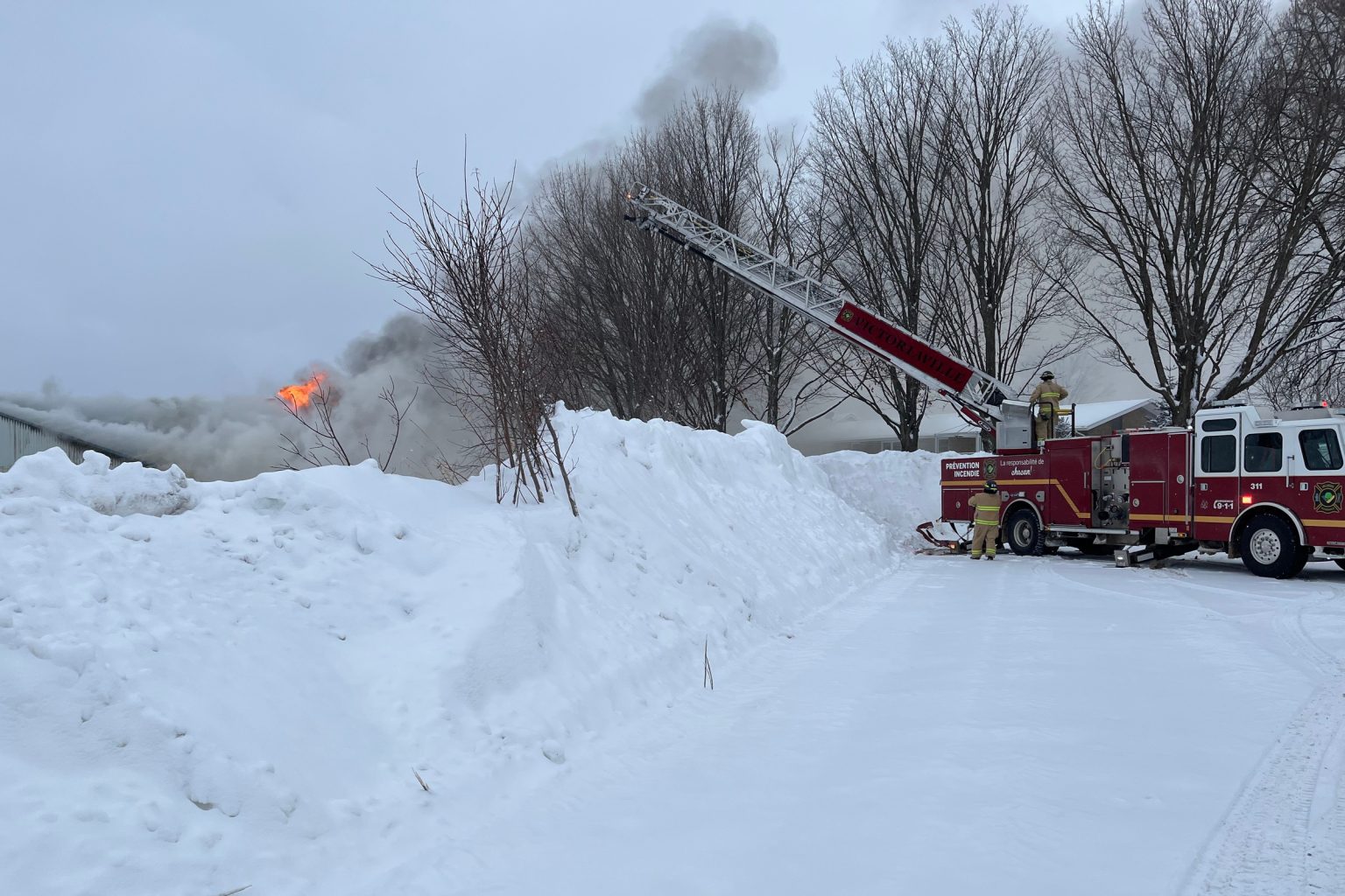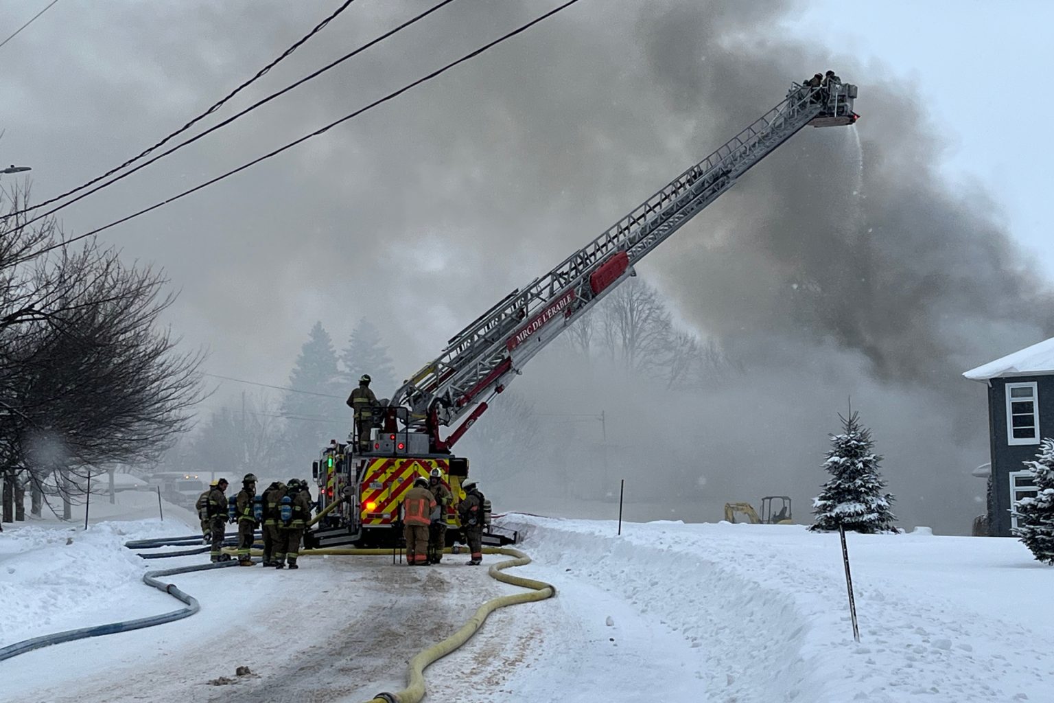 Les pompiers, devant l’ampleur du brasier, ont demandé l’entraide des pompiers du Service de sécurité incendie de Victoriaville.