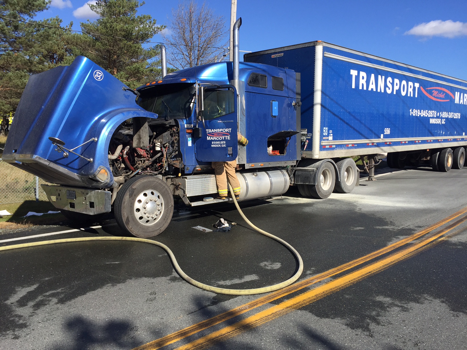 «Le feu s’est alors déclaré dans la partie moteur du camion et les flammes commençaient à se propager à l’intérieur de la cabine», a fait savoir le directeur Gilles Dionne.