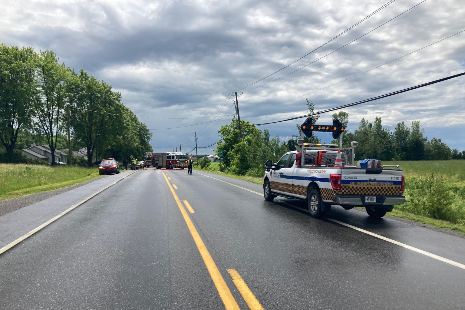 La collision a nécessité temporairement la fermeture de la route dans le secteur, obligeant les usagers à emprunter un détour par les rangs avoisinants.
