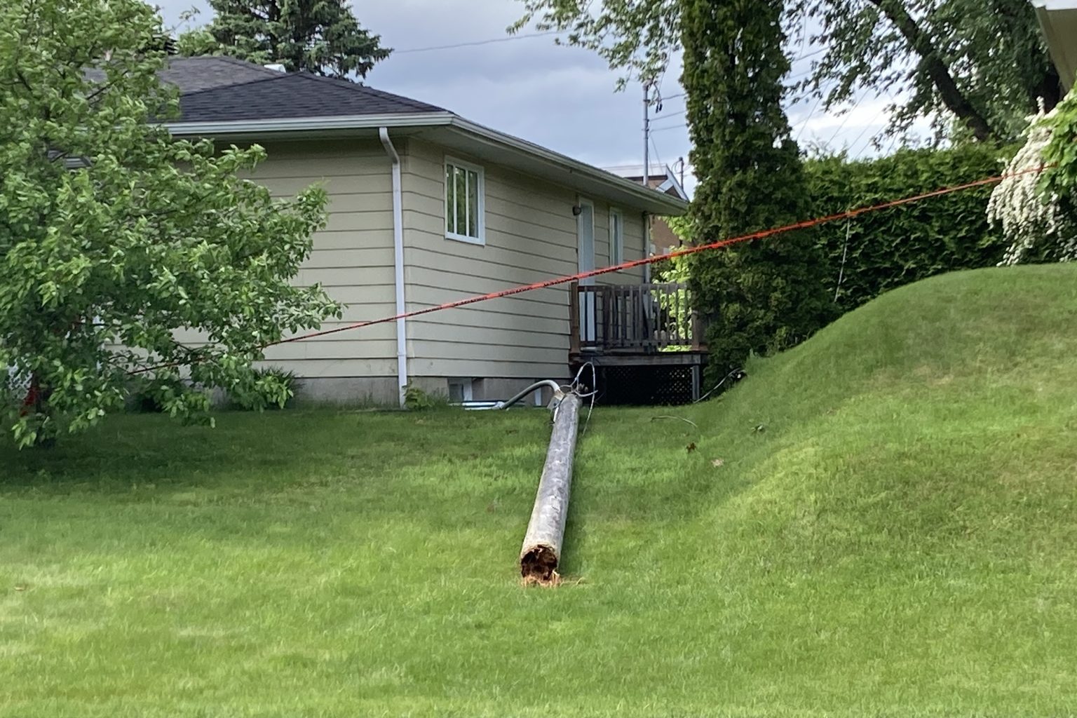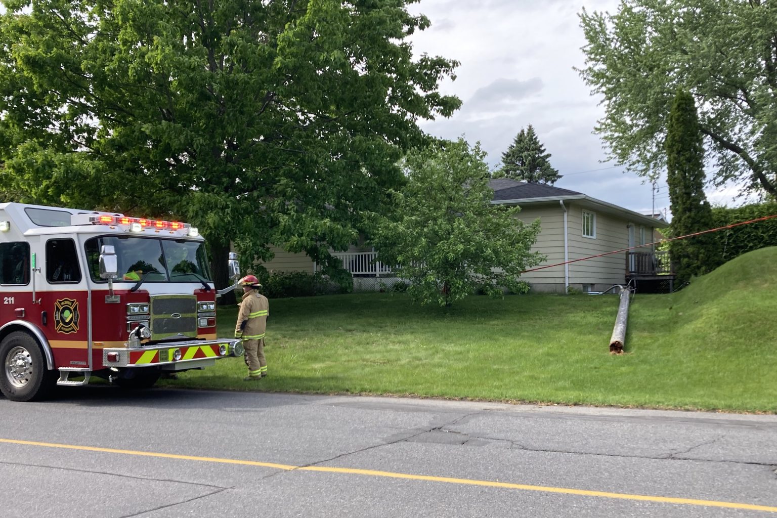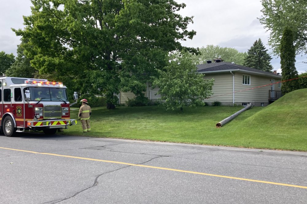 Les pompiers de Victoriaville ont été appelés sur la rue Perreault, lundi après-midi, en raison d’un poteau muni d’un lampadaire et tombé au sol sur une propriété située en face du club de golf.