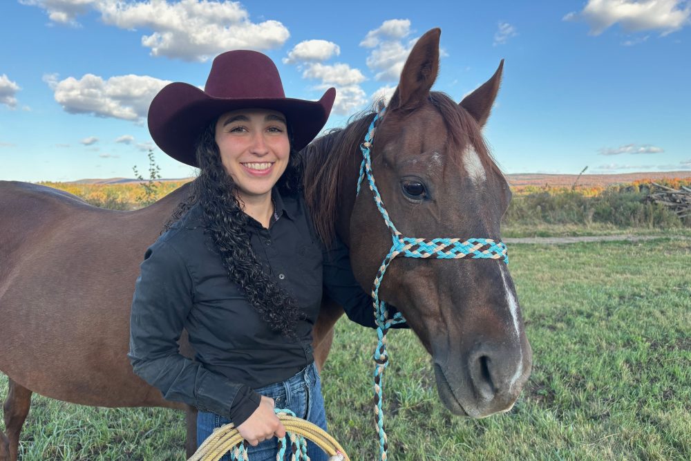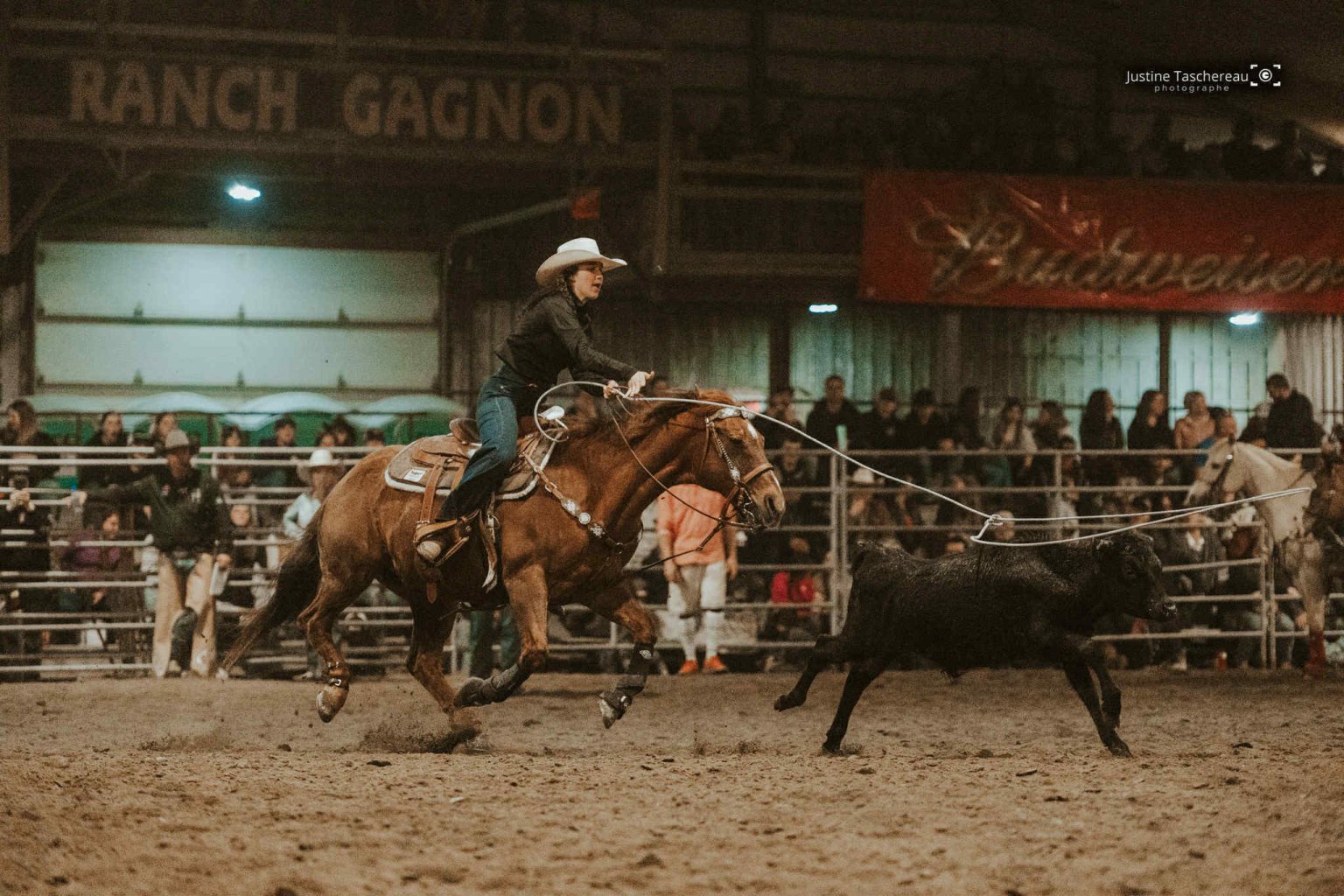 Dans la vie de tous les jours, Cloé Tardif travaille comme aide à la classe, à la suite de ses études en Techniques d’éducation spécialisée. Le monde western, lui, on peut dire qu’elle est tombée dedans quand elle était petite. “Mon père a toujours eu des chevaux. Moi et ma sœur avions un poney au départ. Nous le partagions et nous faisions un peu de parcours à obstacles avec lui. C’était un peu comme notre jouet, je dirais. Ensuite, j’ai eu mon premier cheval à moi. J’ai commencé par faire ce qu’on appelle du gymkhana, donc du baril et du slalom. J’allais souvent dans les rodéos quand j’étais jeune avec mes parents et j’avais remarqué la course de barils en premier. Je voulais faire ça. Mon père m’a ensuite parlé du roping (prise de veau au lasso), alors c’est à ce moment-là que j’ai décidé de m’essayer”, a raconté Cloé.