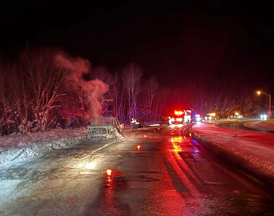 “Le véhicule était tombé en panne. Le propriétaire avait appelé une remorque. Peu après, de la fumée est apparue, puis des flammes. À notre arrivée, l’embrasement était généralisé”, a fait savoir le directeur du SSI, François Arel.