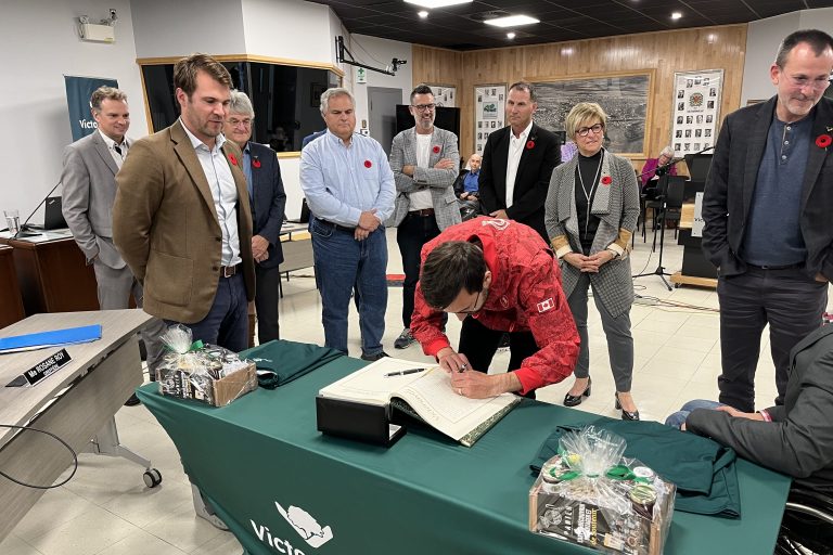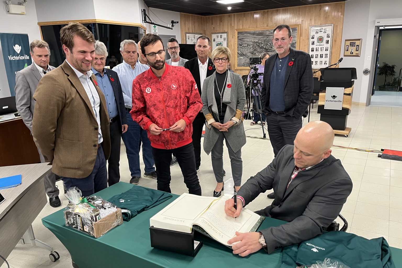 Les deux athlètes ont été invités à signer le livre d’or de la Ville en plus de recevoir chacun un panier cadeau de produits régionaux et un gilet à l’effigie de la Ville de Victoriaville.