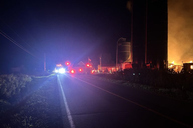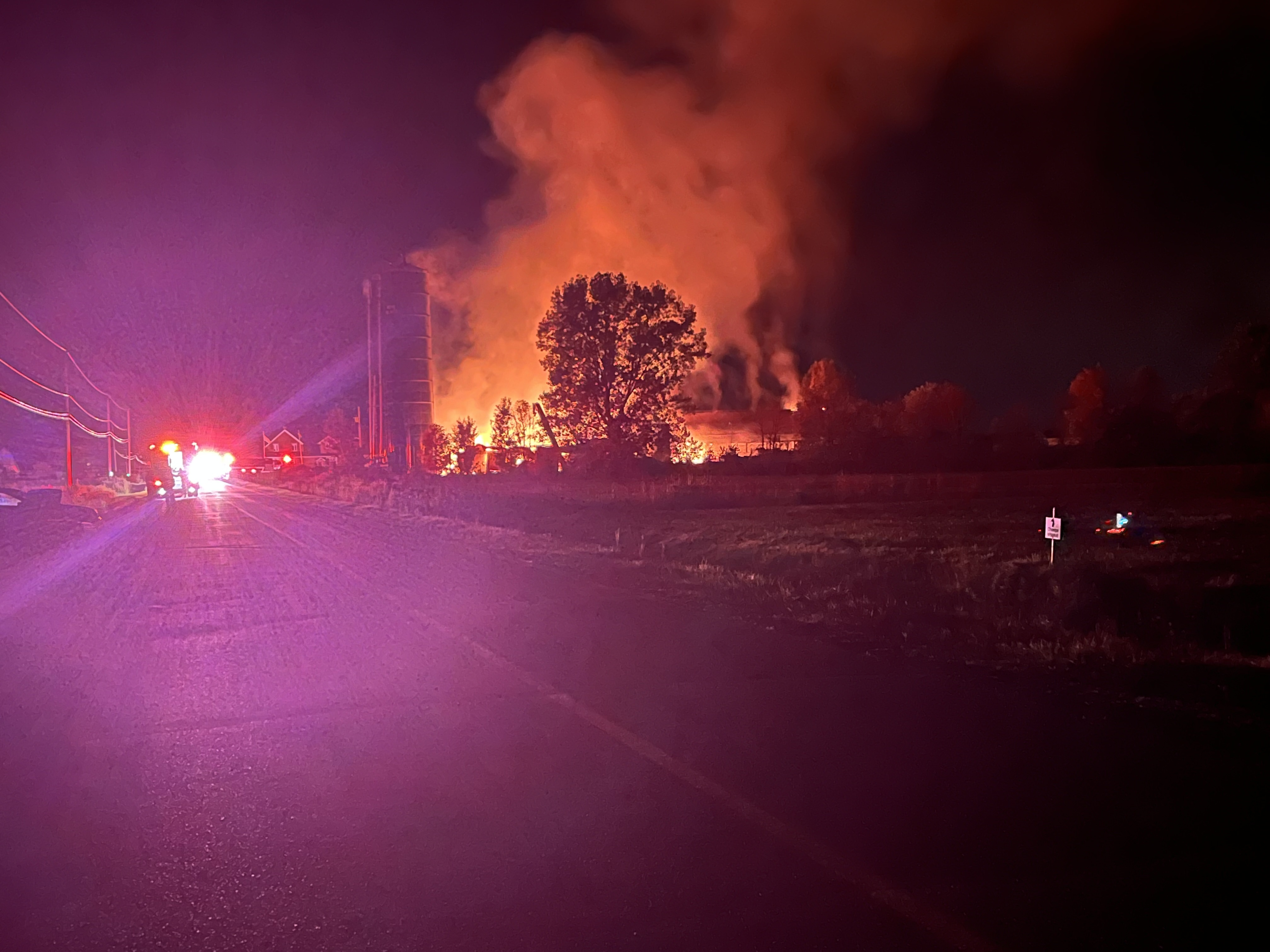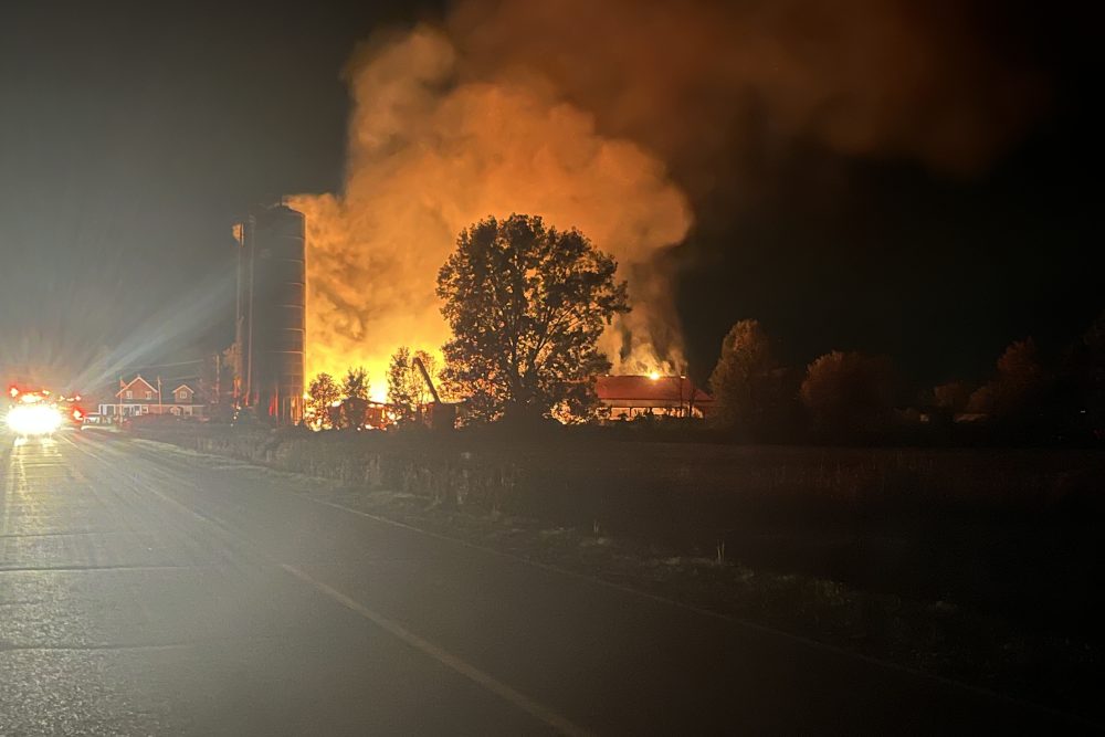 Certaines vaches ont été aperçues à l’extérieur du bâtiment. On ignore pour le moment si des animaux ont péri dans les flammes.