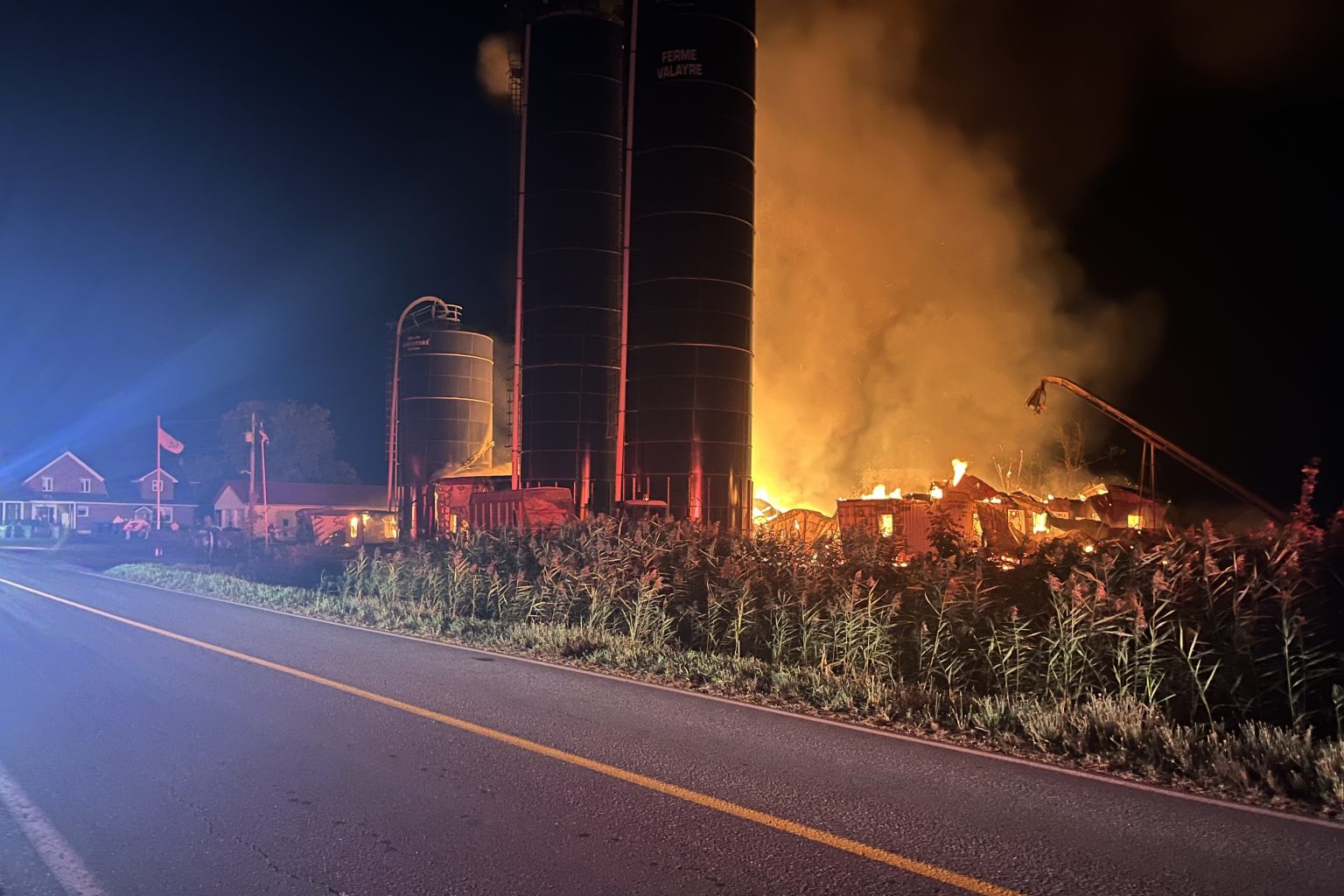 Un violent incendie a éclaté, dans la nuit de mercredi à jeudi, à la ferme Valayre du 12e Rang à Saint-Valère.