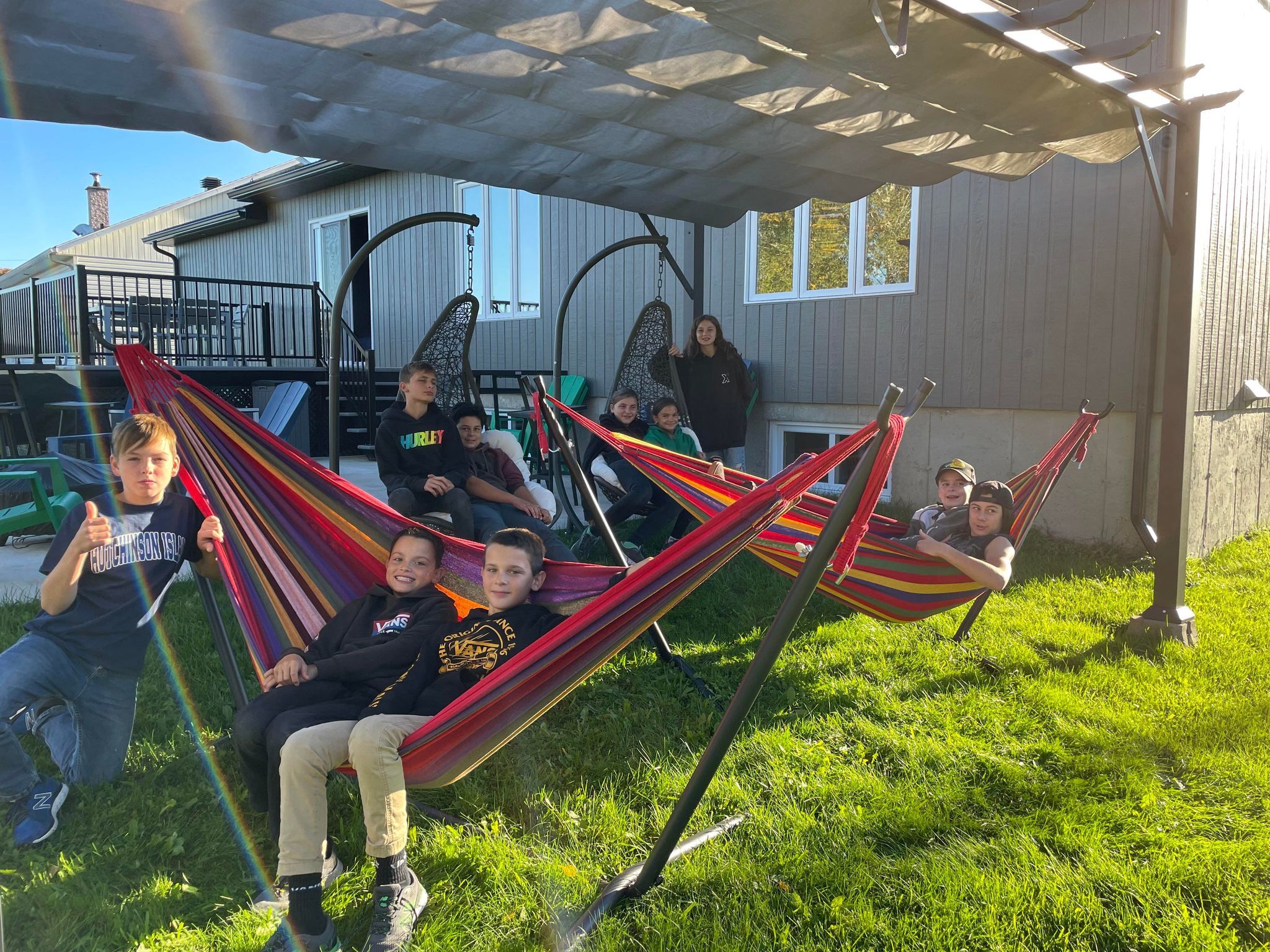 Récemment la maison des jeunes a remporté un concours organisé par Promutuel Assurance Chaudière-Appalaches. Grâce aux 9350 $ obtenus, un espace “mon refuge” a été aménagé à l’extérieur. Constitué d’une pergola, de deux hamacs et du même nombre de chaises suspendues (qui elles seront installées au sous-sol pendant l’hiver), l’endroit chaleureux et réconfortant incite à la détente et à la confidence.