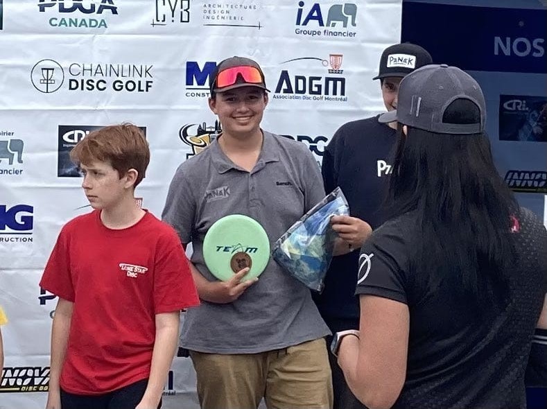 Dans la catégorie junior MJ-15, le jeune discgolfeur a su surmonter une première ronde en dents de scie, marquée par des difficultés en milieu de parcours. Grâce à un fort début de match et une fin de manche dans la normale, il est demeuré près de la tête tout au long de la ronde initiale, terminant en deuxième position, un coup derrière le meneur.