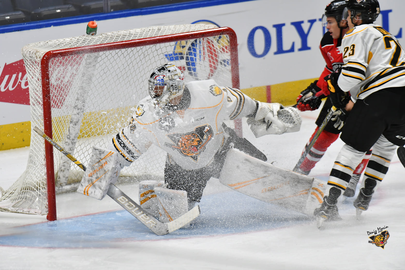 – Félix Paré était de retour au jeu pour les Tigres après avoir purgé sa suspension de deux parties. Nicolas Kingsbury, Antoine Desrochers et Tristan Roy n’étaient pas en uniforme.
