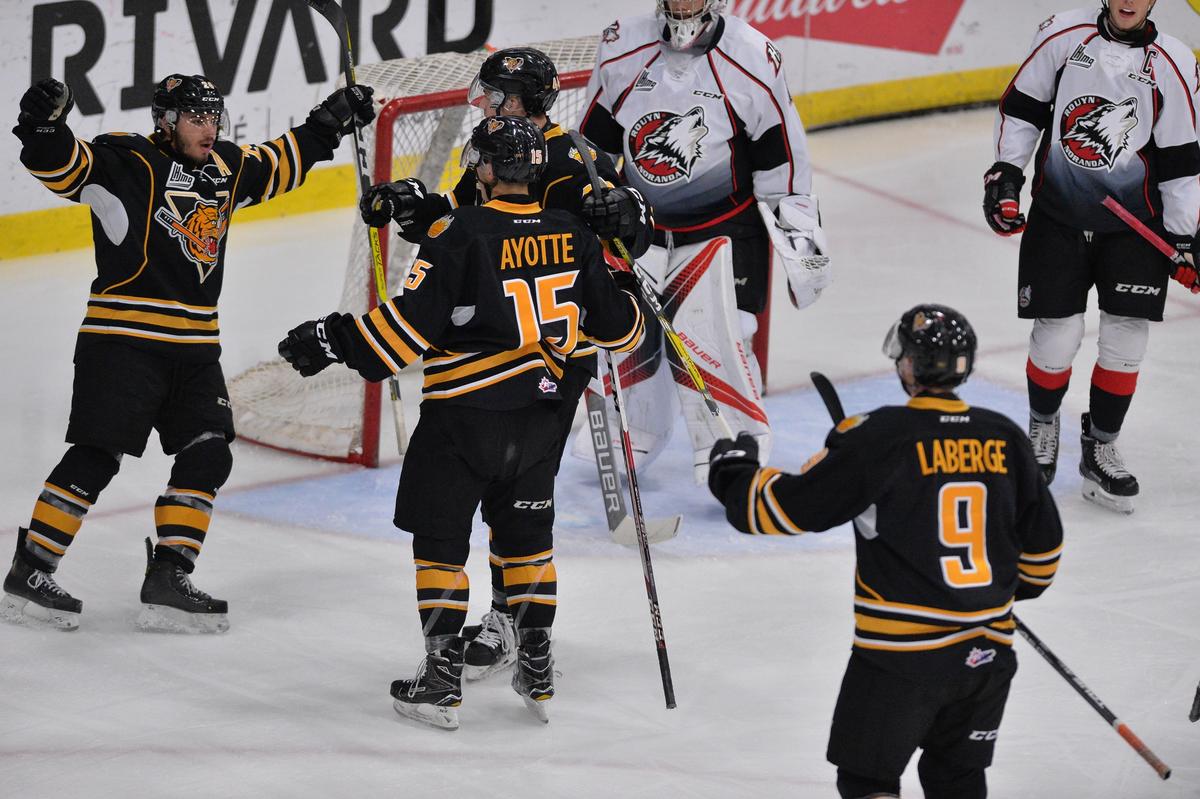 Inspirés par les retours de Pascal Laberge et de Mathieu Ayotte ainsi qu’une performance de deux buts d’Ivan Kosorenkov et d’Alexandre Goulet et d’un peu de chance, les Tigres se sont payé l’équipe qui trône au sommet du circuit Courteau, les Huskies de Rouyn-Noranda, en l’emportant 5 à 4 devant 2261 partisans à l’Amphithéâtre Gilbert-Perreault.