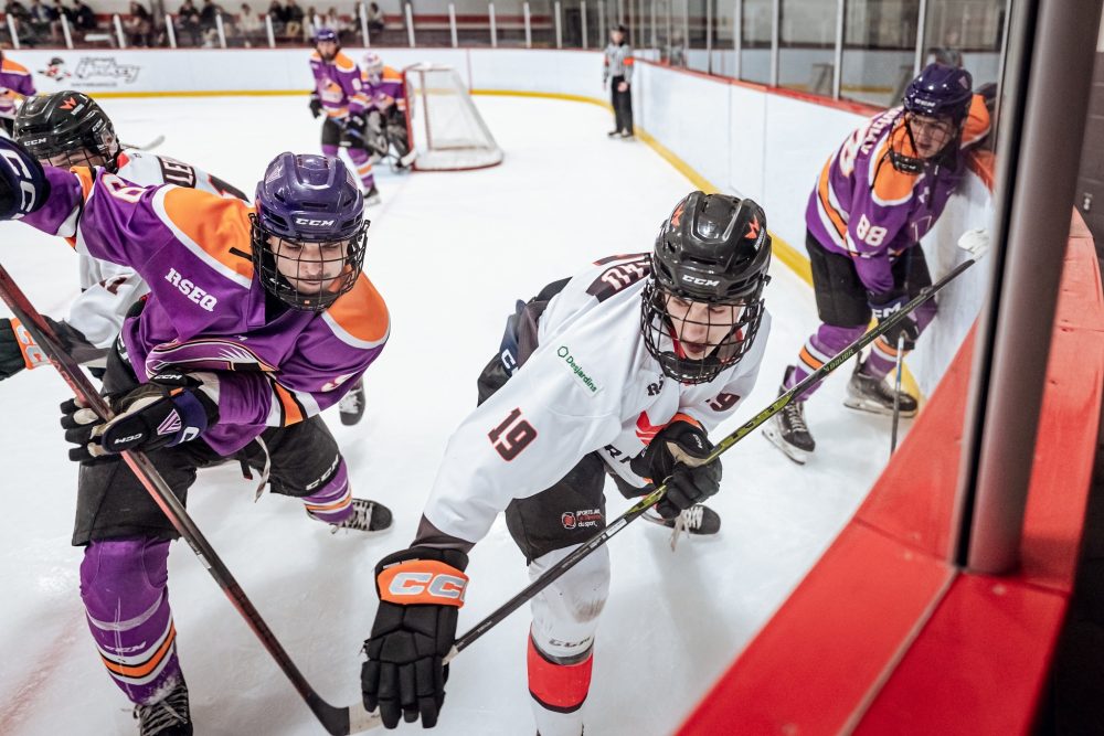 La marque était encore de 1-1 avec deux minutes à écouler au cadran en troisième période. Une erreur défensive a coûté le match aux Mauves. Bien qu’il s’avère déçu du dénouement, Nicolas Boucher s’est dit très heureux de la performance de ses athlètes qui n’ont jamais abandonné contre la meilleure équipe du circuit. “C’est difficile. Notre gardien a vraiment fait les arrêts clés. On défendait bien contre la meilleure équipe de la ligue. De l’autre côté, je pense qu’ils avaient trois joueurs qui ont évolué dans la Ligue de hockey junior Maritimes Québec (LHJMQ) cette saison. L’adversaire était donc vraiment une puissance. On les a tenus jusqu’à la fin et on y croyait. Finalement, je pense que l’équipe gagnante méritait la victoire.”