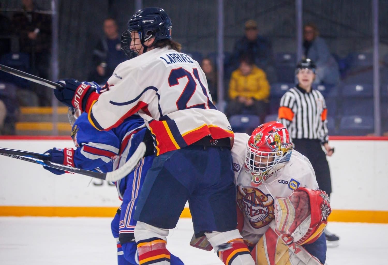 À noter que Lyam Jacques, en fin de première période, a écopé d’une pénalité de cinq minutes et d’une inconduite de partie pour avoir porté un coup à la tête. La rencontre a d’ailleurs été très physique entre les deux formations. Plusieurs altercations ont eu lieu à divers moments dans le match.